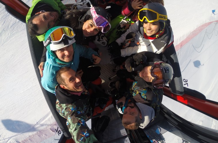 Ordan Sırt liftini kullanıp Erciyes’te 2600 metre rakıma ulaştık. Dağda her zaman amacın boardunun üstünde kayarak ilerlemek olmuyor, bazen de o anın keyfini çıkarmak için kaymıyorsun bilerek. Bir kaç renkli kıyafet içerisinde kameralara poz vermek üzere telesiyeje oturuyorsun. Bir süredir birbirinize vakit ayıramadığın arkadaşınla hasret gideriyorsun, o an, o telesiyejde. Böyle bir 20 dakikada kimi zaman dağın sükunetine kapılıp, kimi zaman gözümüzden yaşlar gelircesine gülerek yaptık Sırt liftinin zirvesinden Hacılar’a doğru olan yolculuğumuzu.